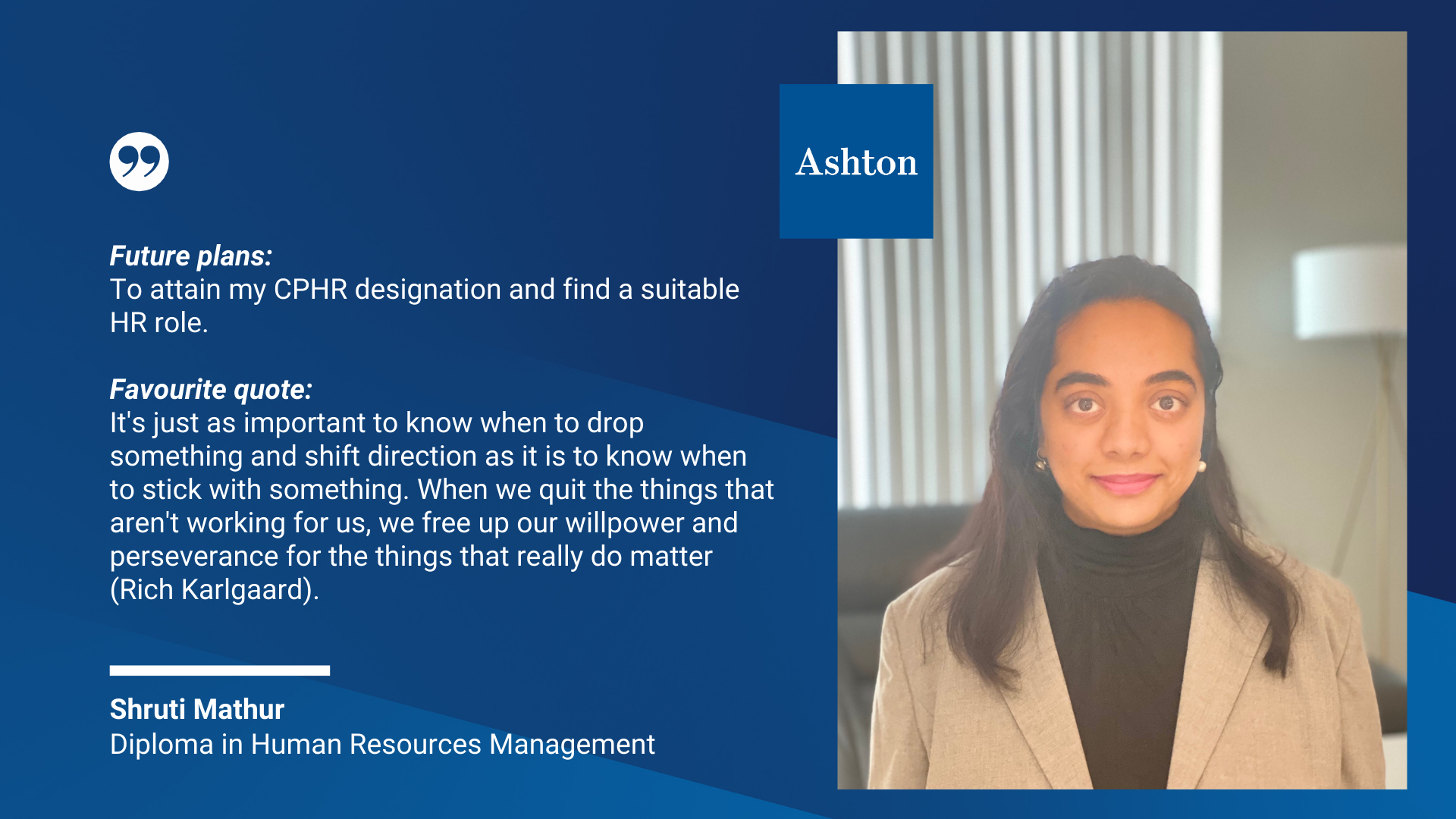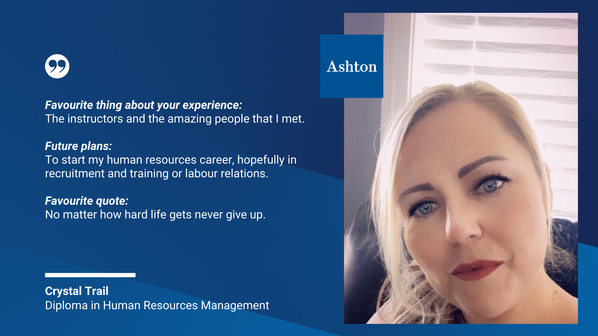 The graduates from our Human Resources Management Diploma Program have proven experience and insight in exploring workforce planning, human resources development, compensation and benefits, labour relations and occupational health and safety. Their perseverance inspires us, and we cannot wait to see how they shape the future of human resources across a broad range of industries.