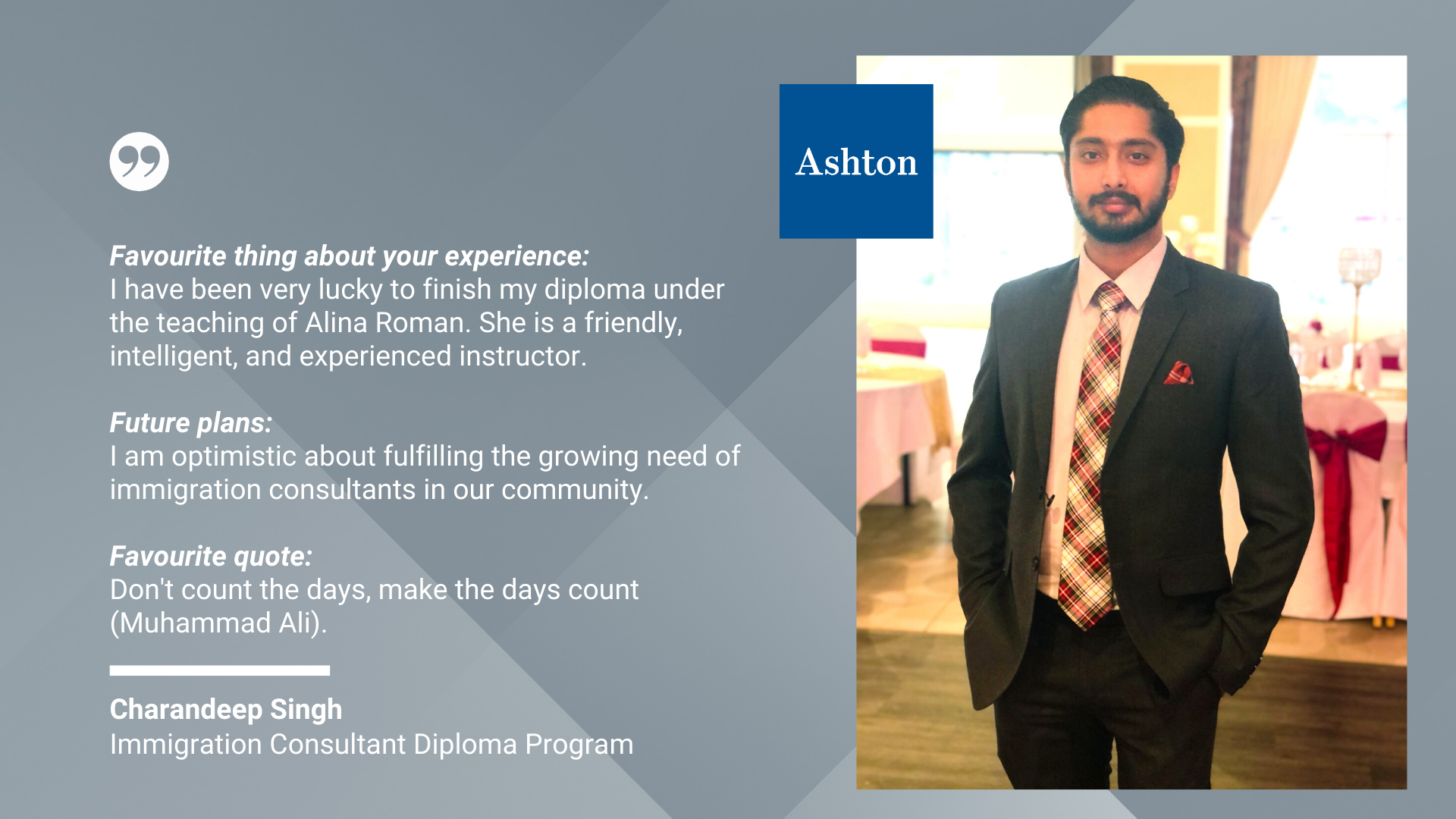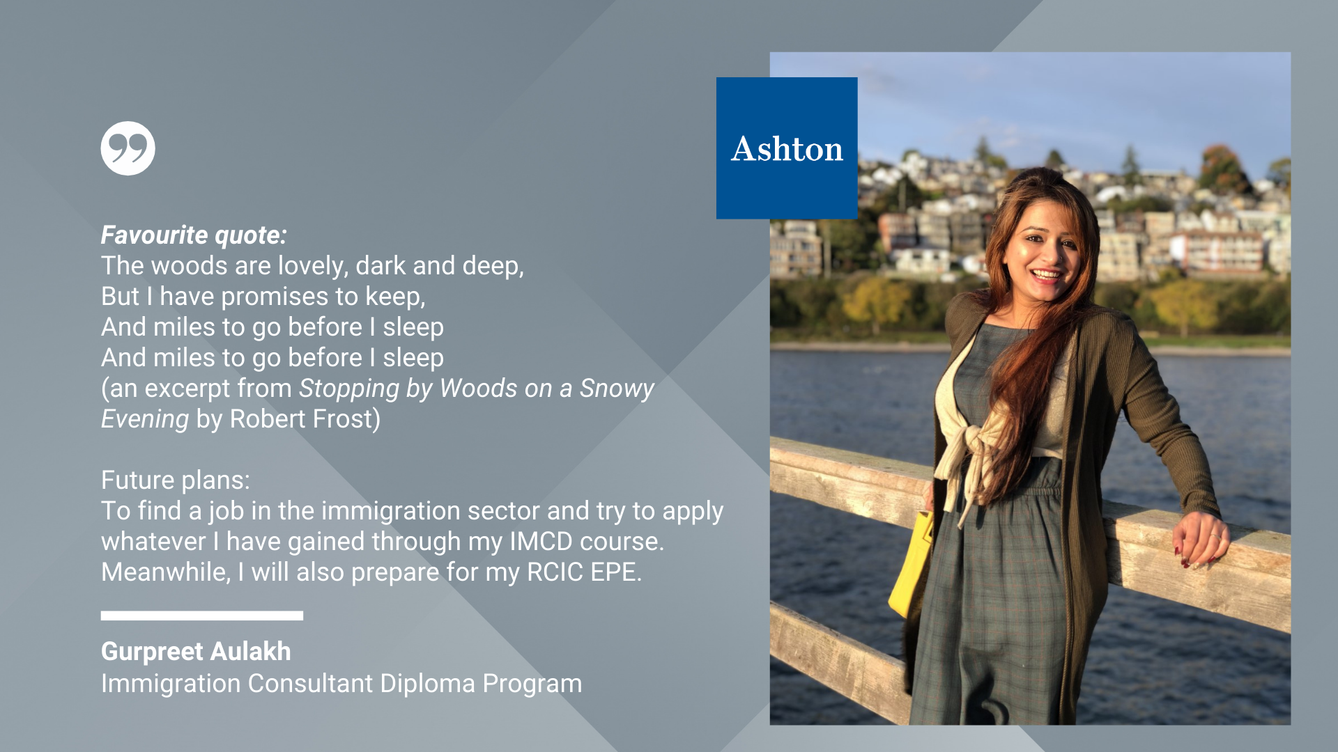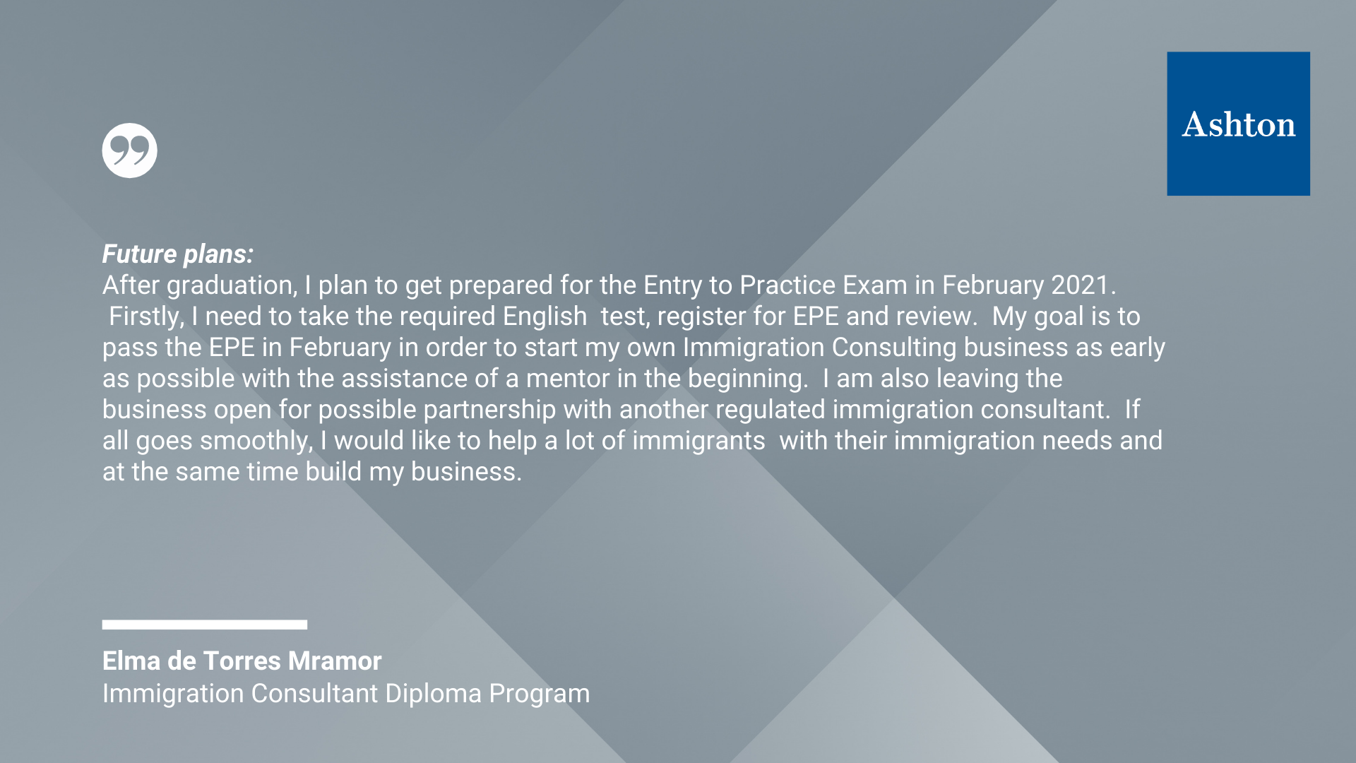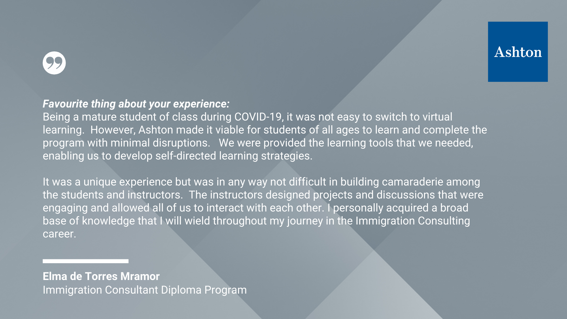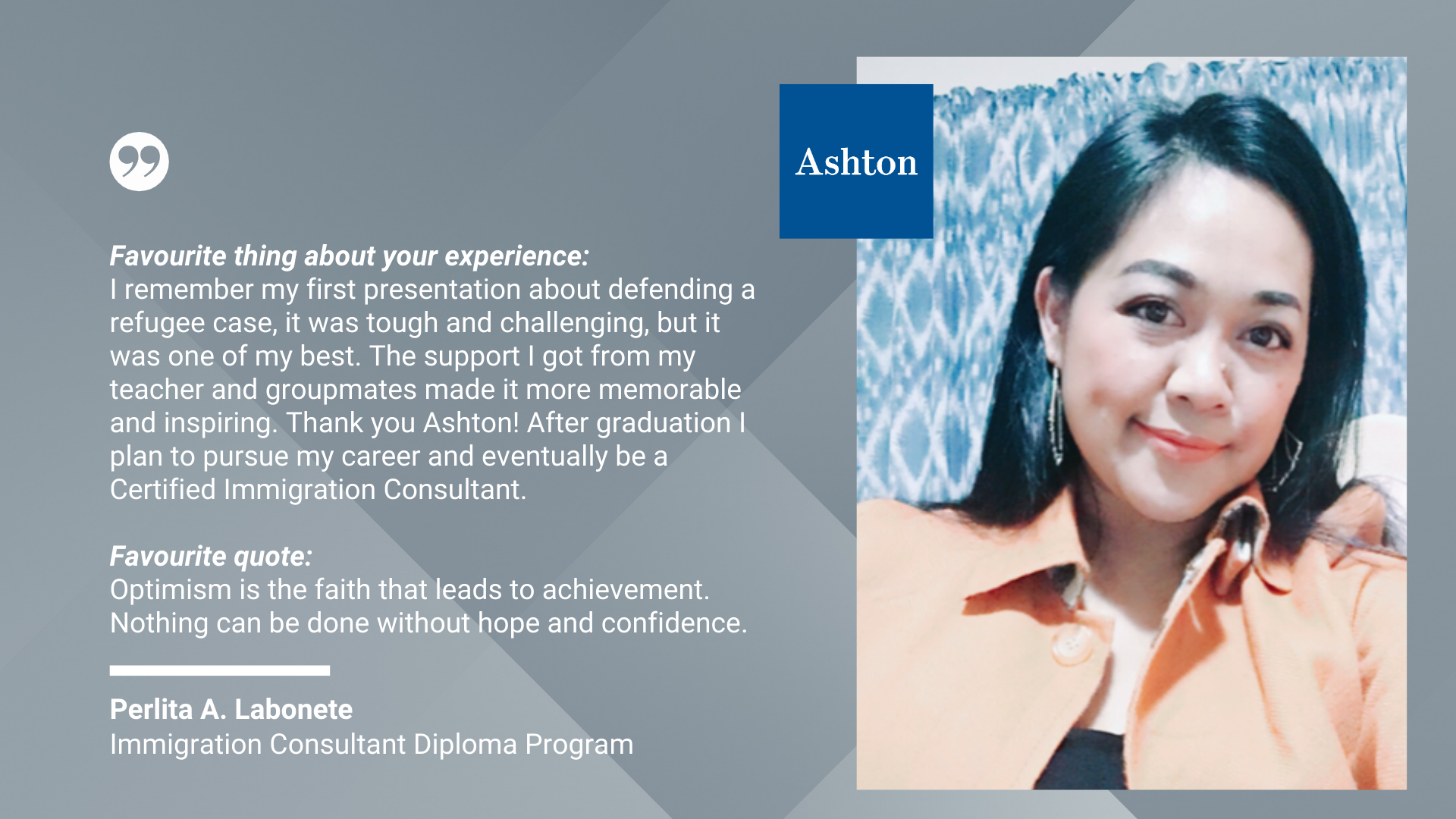 We are so inspired by the wealth of diversity and insight from the graduates of our Immigration Consultant Diploma Program. These graduates acquired the skills and knowledge they need to serve newcomers seeking help in navigating immigration issues within Canada.