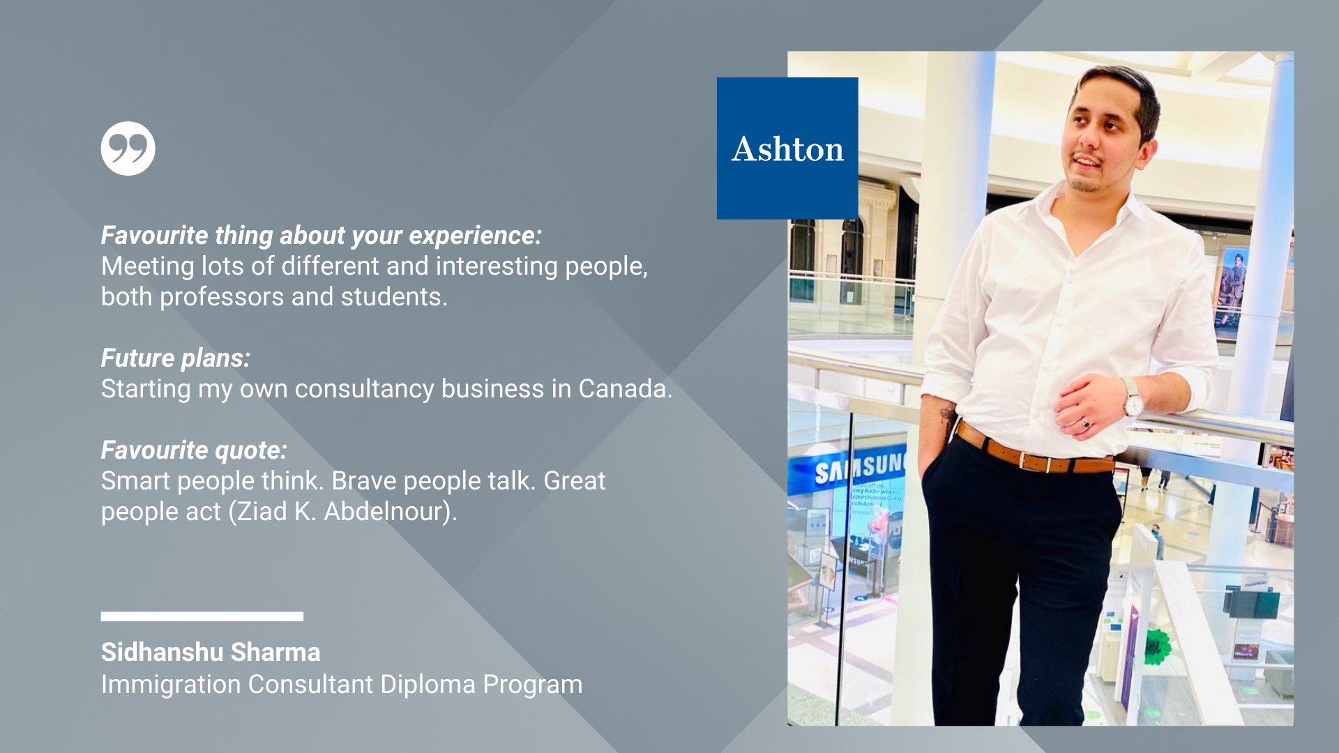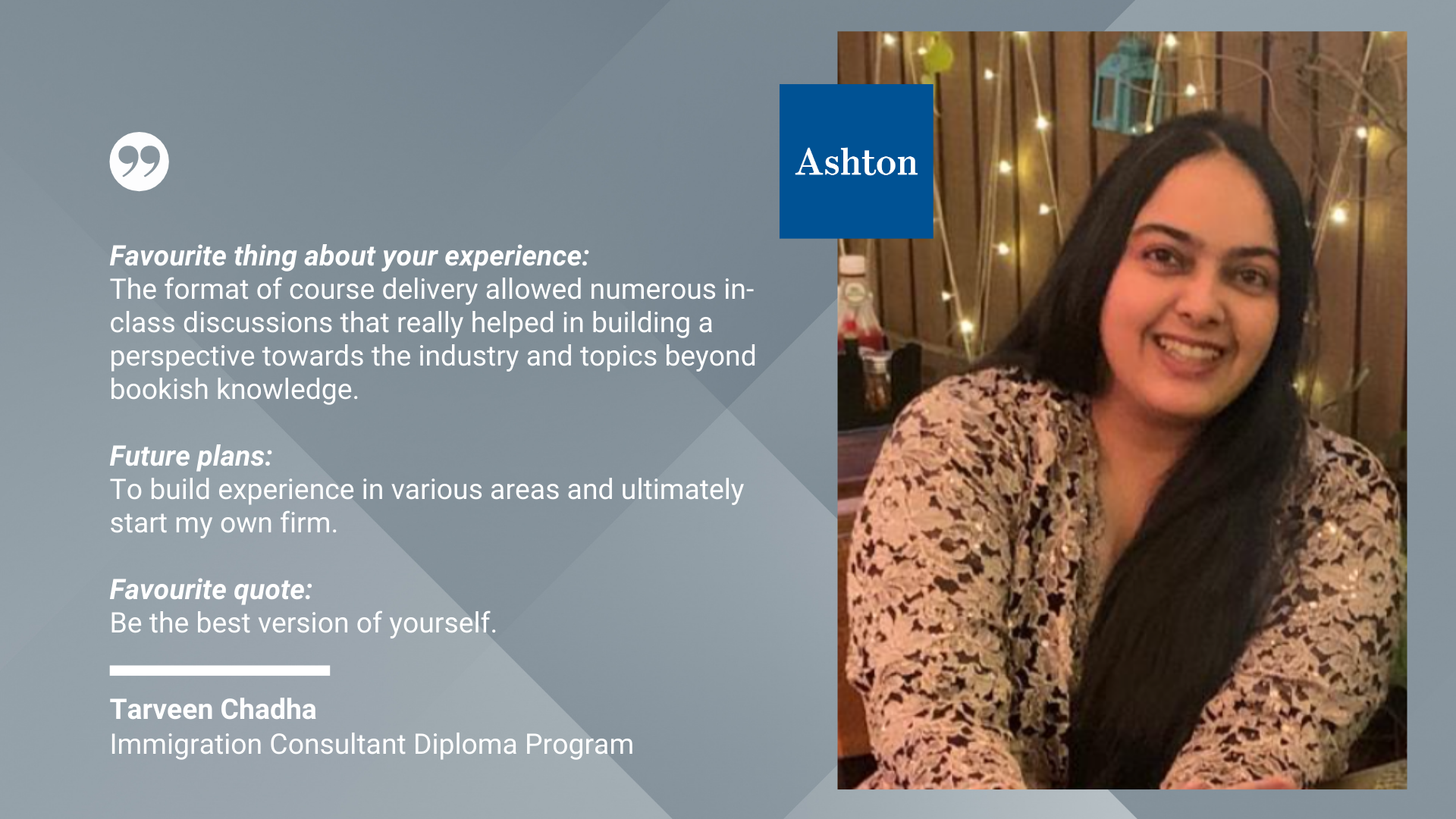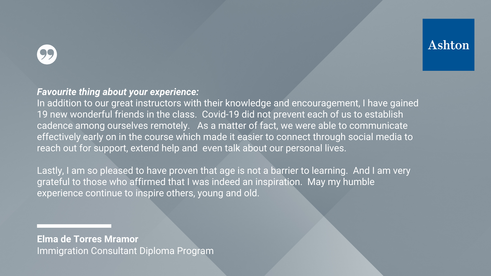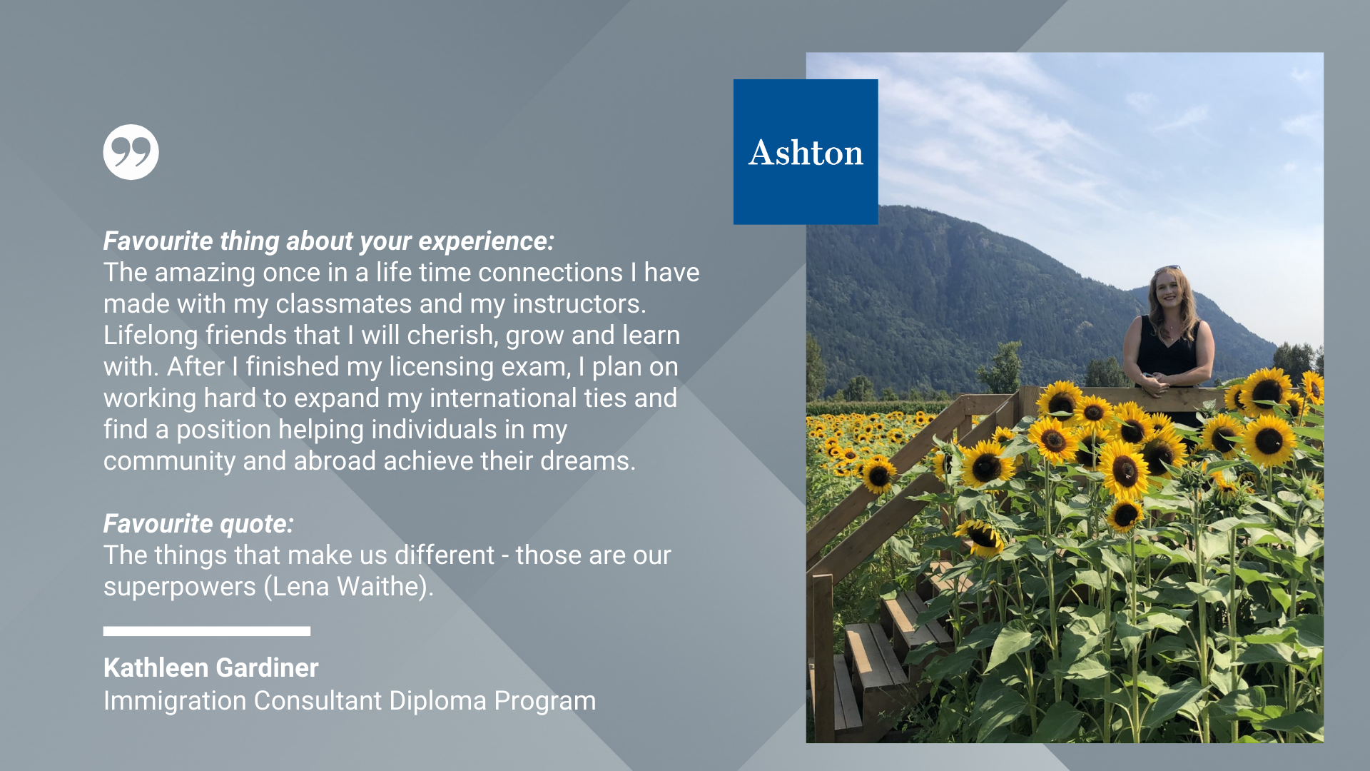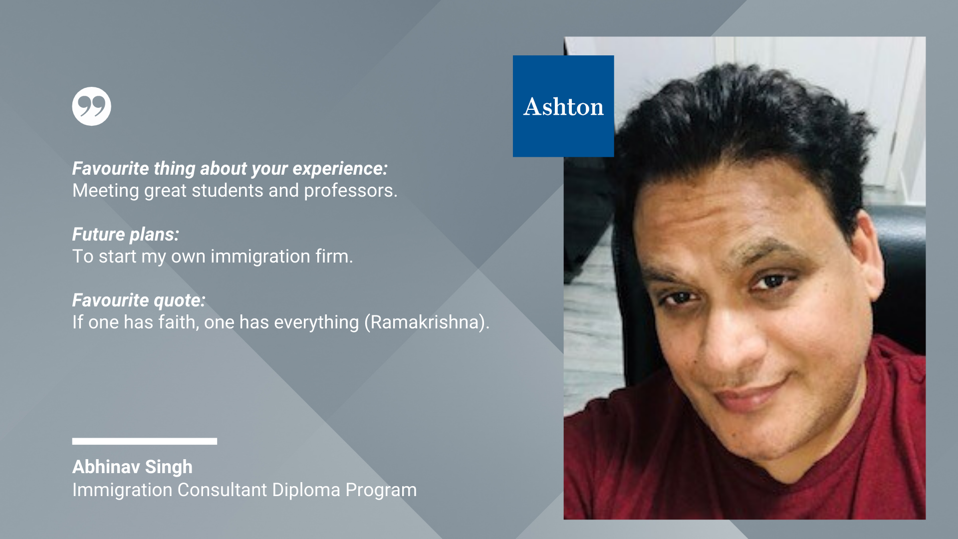 We are so inspired by the wealth of diversity and insight from the graduates of our Immigration Consultant Diploma Program. These graduates acquired the skills and knowledge they need to serve newcomers seeking help in navigating immigration issues within Canada.